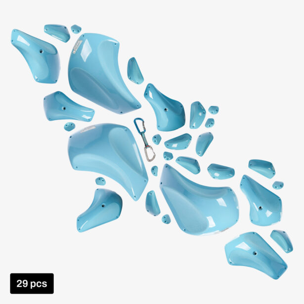 The set is ideal for modern overhang problems focused on grip strength and body tension. The glossy texture supports controlled compression on the climbing holds.