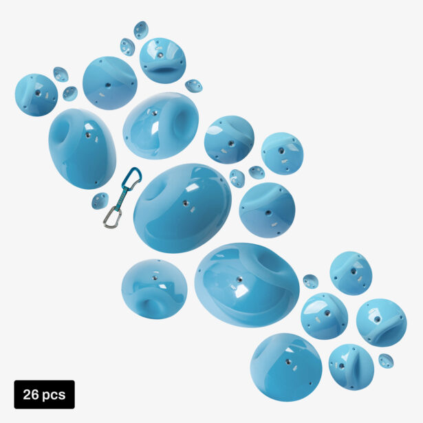 Lezecké chyty UFO tvoří boulder kit navržený pro silové a dynamické bouldery v převislých profilech. Dominantní velká PU makra doplněná o výrazná madla (jugs), pozitivní lišty a stupy umožňují stavět fyzicky intenzivní a zároveň dobře čitelné bouldrové cesty.