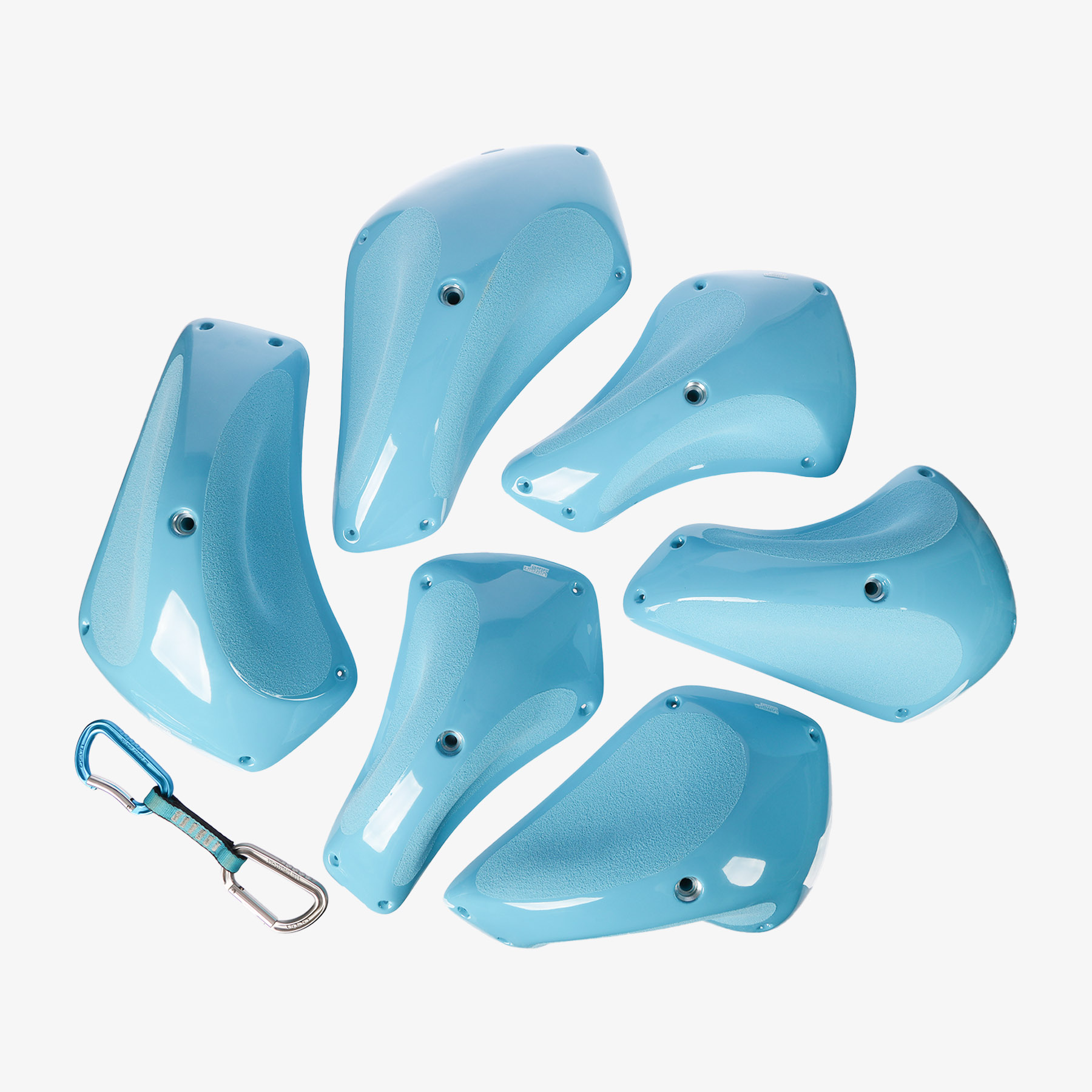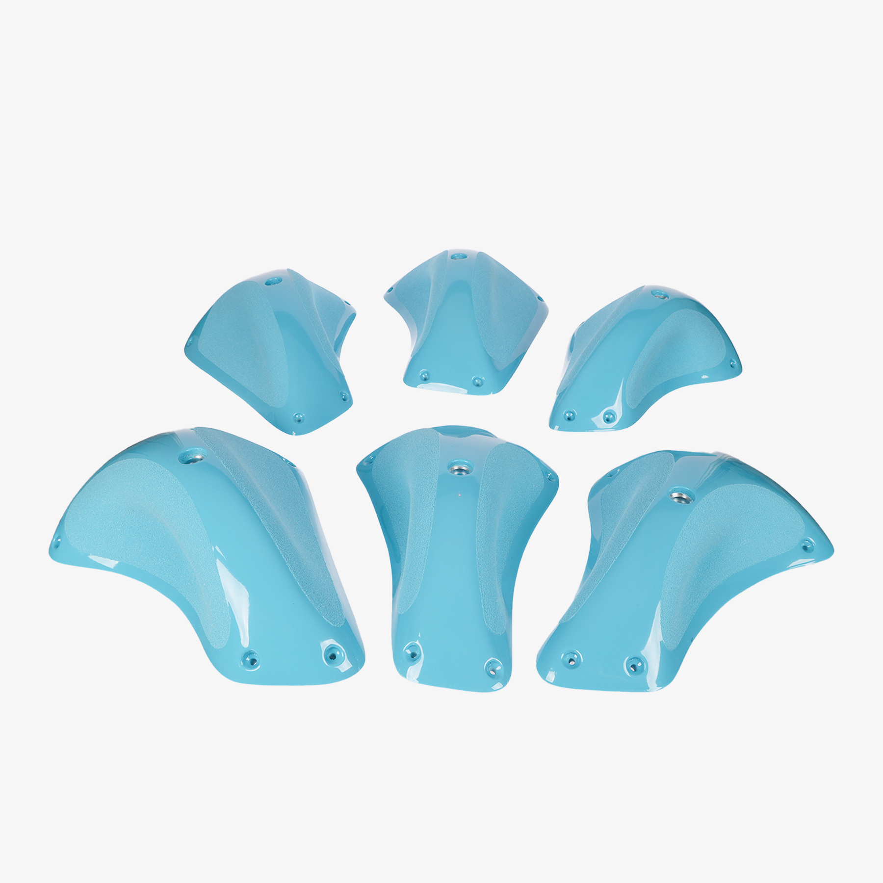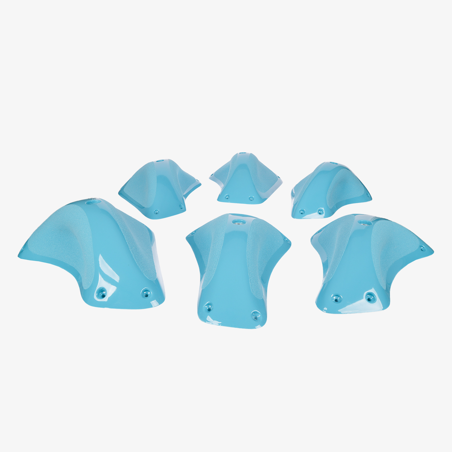 The Falcons climbing holds Pinches set includes 6 ergonomic pinches in various sizes. Their distinct shapes and textures allow for powerful squeezing as well as technical positioning. Ideal for strength-based boulder routes and creative lead routes.