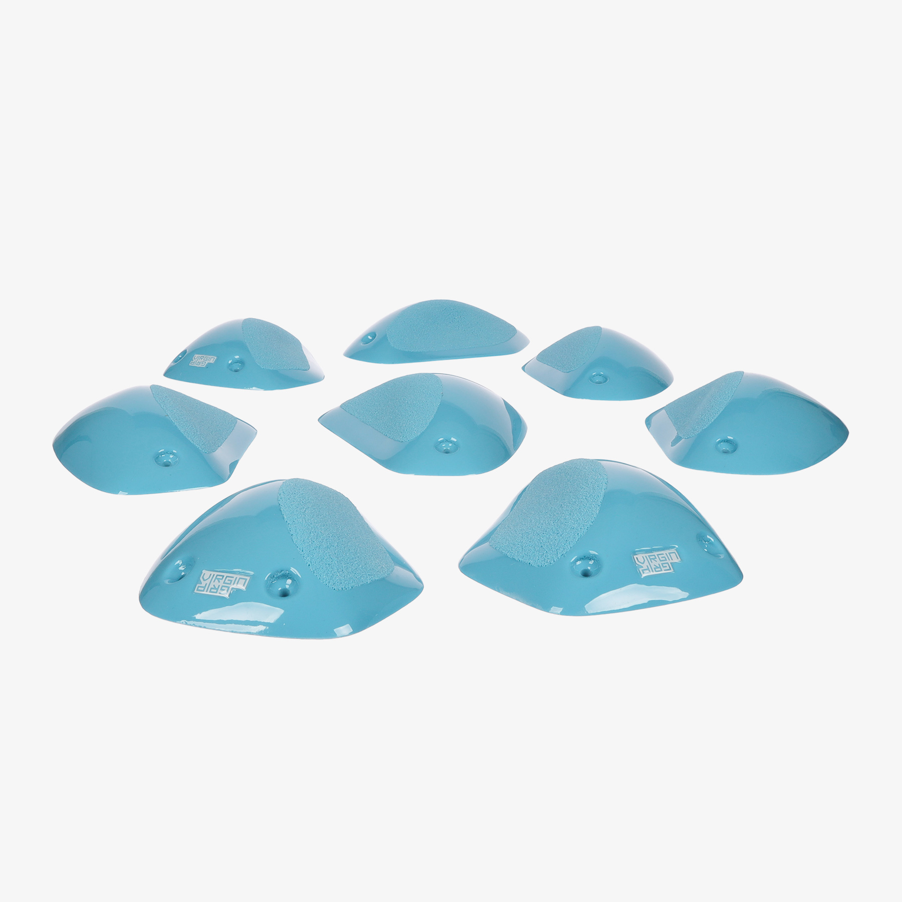 The Falcons climbing holds Small Plates set includes 8 small rounded plate-style holds. These climbing holds work perfectly as technical footholds or hand supports in balance-heavy sections. Ideal for creative boulder routes and challenging lead routes.